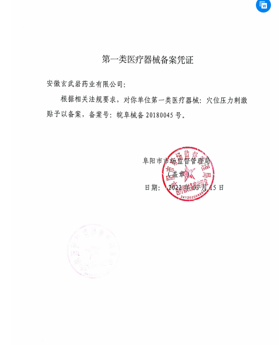 穴位壓力刺激貼備案憑證