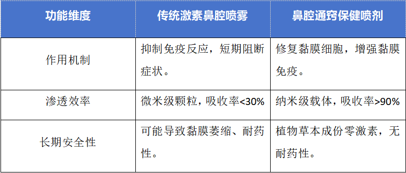 傳統(tǒng)鼻腔噴霧的分子粒徑多在微米級,難以穿透致密的鼻黏膜屏障,導致吸收率不足30%,大量藥物殘留在鼻腔前端或被吞咽代謝。更嚴重的是,長期使用激素可能引發(fā)鼻出血、黏膜萎縮等副作用。
